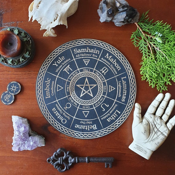 Wiccan calendar / witches annual wheel crystal grid wooden – Six